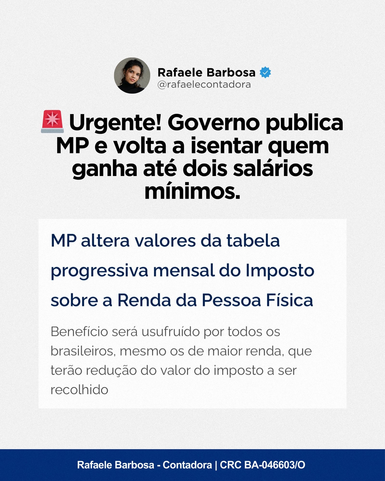 🚨 Empreendedores, fiquem atentos! A Medida Provisória 1.294/2025, publicada em 11 de abril, ampliou a faixa de isenção do Imposto de